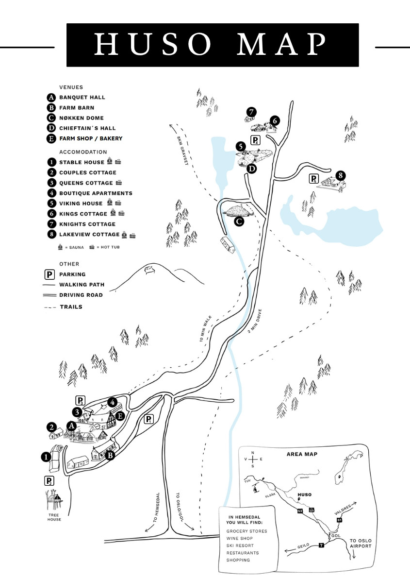 Huso Lodge consists of five large cabins and some smaller accommodation units, as well as four large function rooms: