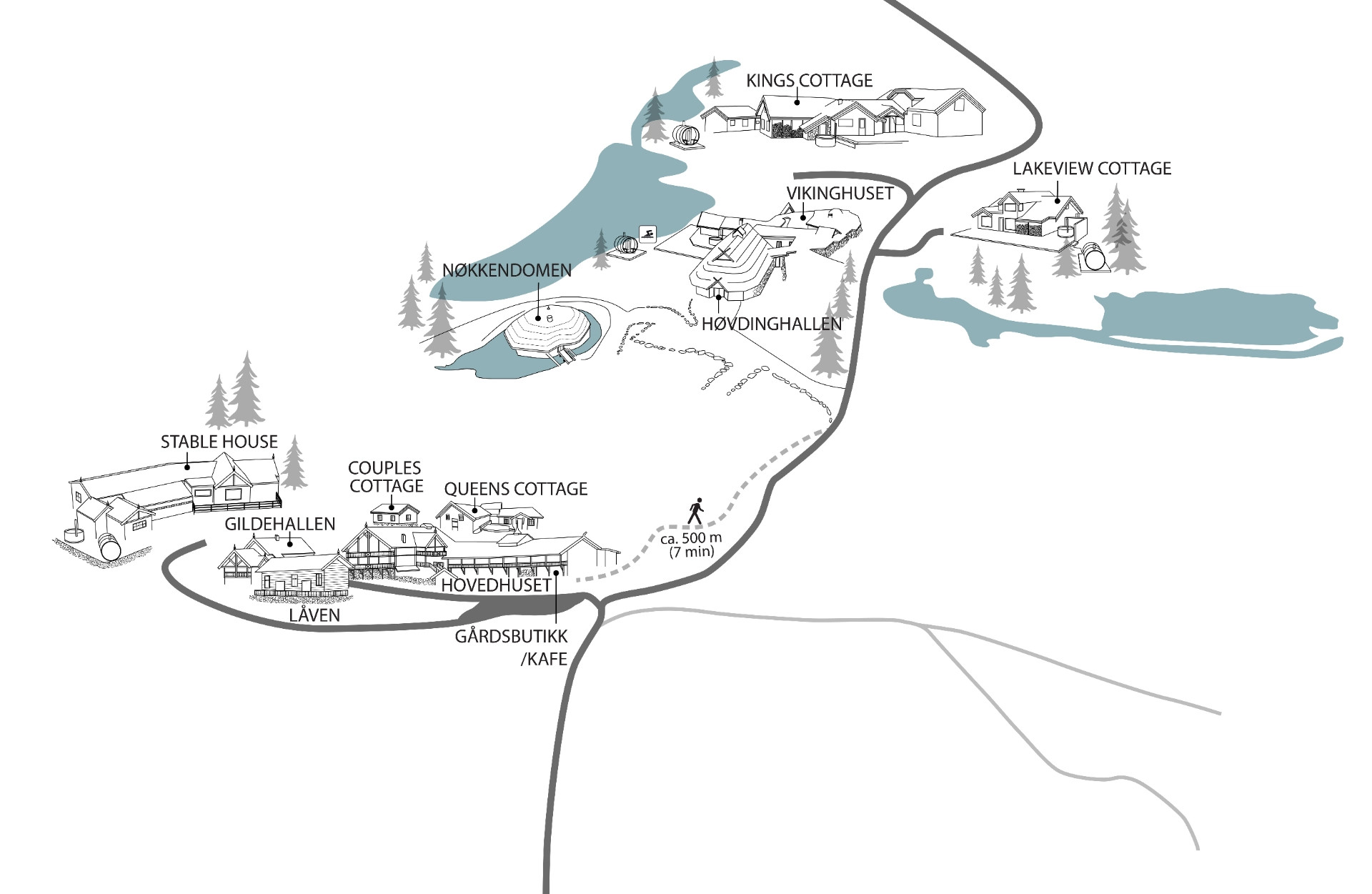 Alle gjester vil bli innlosjert i hytter og leiligheter som har egne kjøkken, bad og alle fasiliteter du kan ønske deg! Det er i tillegg flere saunaer på området og mulighet for litt stamping ved enkelte av hyttene. Hyttene ligger fordelt utover et større området, så noen hundre meters gange mellom hver aktivitet må påregnes.